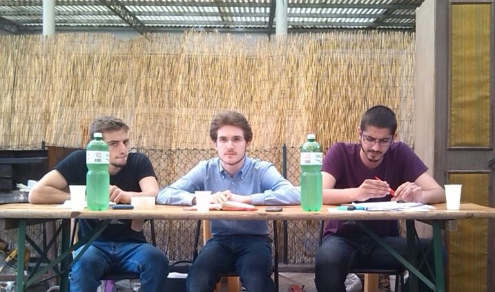 Sabato 10 maggio, Locarno: Conferenza pubblica su Gripen e F-35. Da sinistra: Francesco Delledonne (Giovani Comunisti Milano), Edoardo Cappelletti e Amos Speranza (Gioventù Comunista della Svizzera Italiana)