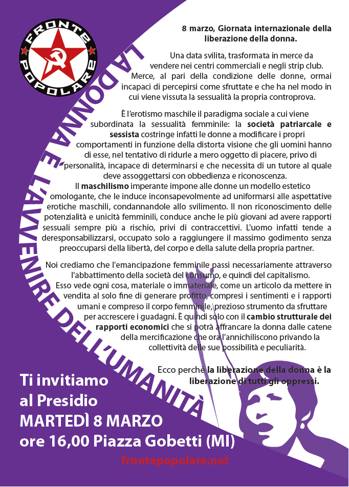 Est Publicato 2 marzo 2016 alle 682 × 951 li 8 Marzo 2016: mobilitazione femminista di Fronte Popolare ← Precedenti Successivi →