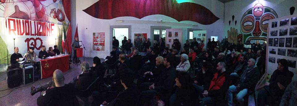 Oggi siamo ripiombati ormai nella preistoria, in uno dei più bui e spaventosi antri di cui l’umanità è capace. Ma il motivo per cui anche Fronte Popolare è stato dal 10 al 12 novembre al Villaggio Globale di Roma assieme ai compagni di Patria Socialista, Tanas, Villaggio Globale e associazione “i Refrattari”, è quello di ricordare e rivendicare con forza quanto ci appartenga la storia scritta dalla Rivoluzione d’Ottobre, ed è perché con tutti questi compagni con cui condividiamo il cammino e l’obiettivo di riprenderci ciò che ci spetta, intendiamo riprenderci anche il futuro dell’umanità.