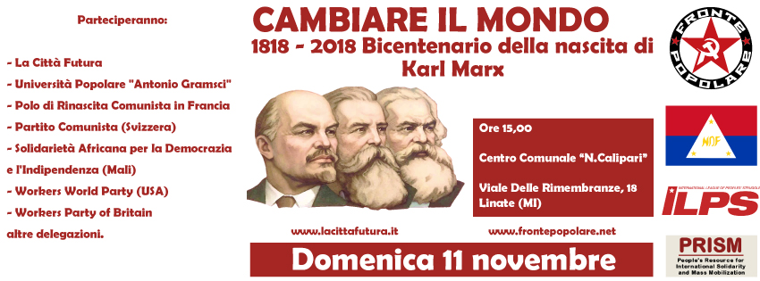 A conclusione delle celebrazioni per il bicentenario della nascita di Karl Marx (1818-2018) un appuntamento per confrontarci sull’attualità del pensiero marxista con comunisti provenienti da tutto il mondo e per aprire insieme un nuovo secolo di rivoluzioni sociali.