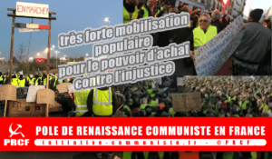 Ora che il movimento sociale è lanciato, rifiutando il falso apolitismo di alcuni manifestanti arretrati che spingono indietro il movimento, e combattendo senza quartiere la destra e l’estrema destra, i militanti sinceramente comunisti continueranno a parteciparvi in prima fila, contribuendo ad allargare, a fornire con modestia ma senza freddezza le spiegazioni necessarie, a portare nelle lotte la prospettiva di una Repubblica sociale e sovrana, totalmente emancipata dall’UE sovranazionale e dal sistema capitalista, a chiamare alla ricostruzione del sindacalismo di classe tradito e a quella di un partito comunista combattivo.