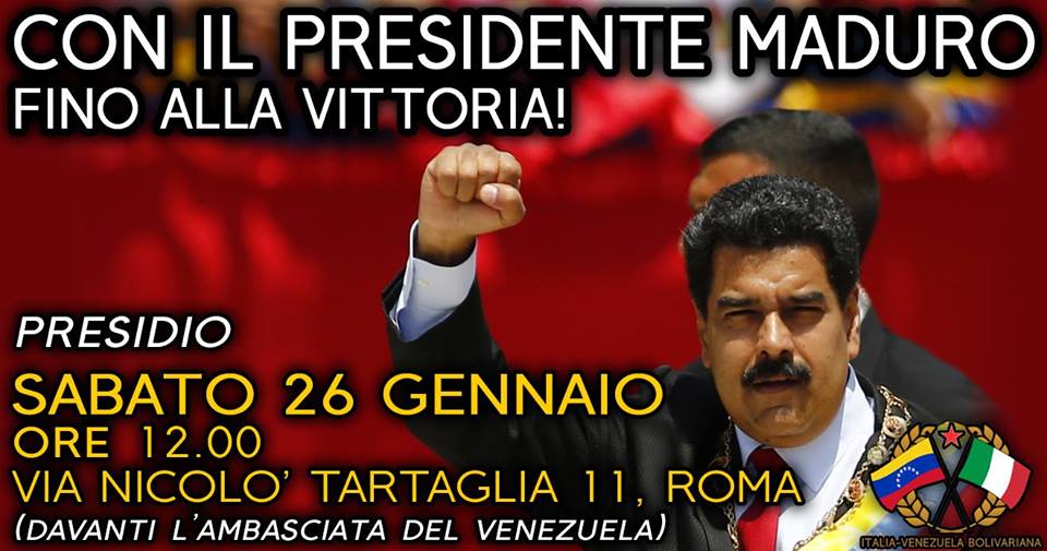 Riportiamo l’appello di convocazione del presidio indetto per oggi all’Ambasciata del Venezuela a Roma in solidarietà contro il tentativo di colpo di Stato manovrato dagli USA in atto nel paese sudamericano. Alla convocazione del presidio ha aderito anche Fronte Popolare.