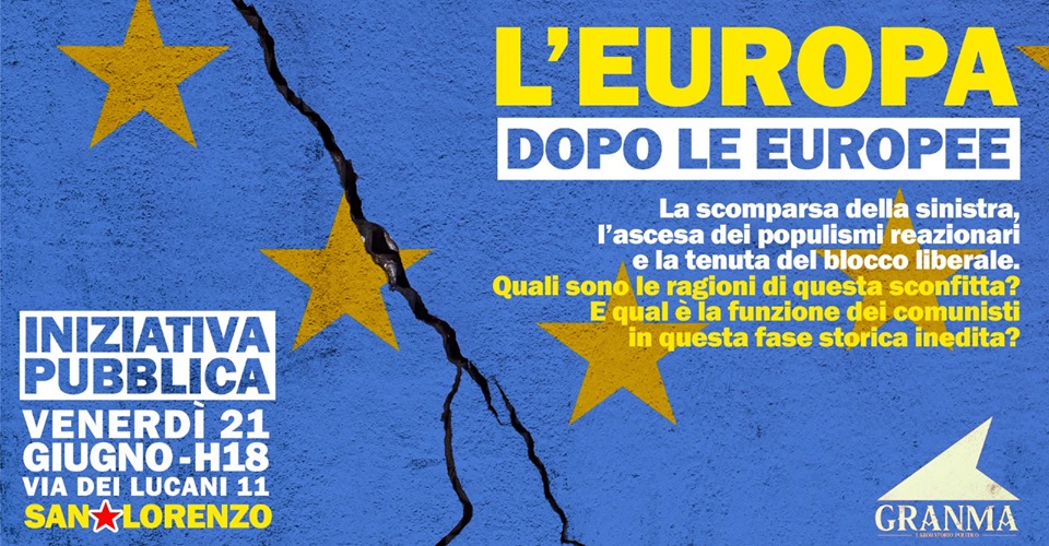 Alla crisi oggettiva e irrisolvibile del capitalismo non corrisponde lo sviluppo del conflitto e con esso di una soggettività cosciente che miri al superamento di tale sistema iniquo. Le lavoratrici e i lavoratori con le loro organizzazioni non escono rafforzati dalle elezioni europee. La bassa affluenza alle urne non è accompagnata dalla lotta di classe degli oppressi e lo scarso risultato delle forze politiche che mirano a rappresentare gli sfruttati unita alla schiacciante vittoria delle forze liberiste e reazionarie non prelude a nulla di buone né in Italia né in Europa.