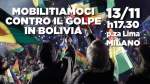 A Milano è indetto un presidio per oggi, 13 novembre, alle ore 17.30 in Piazza Lima, nei pressi del Consolato Generale dello Stato Plurinazionale di Bolivia. Link all’evento