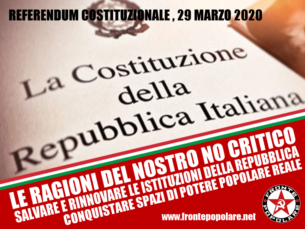 Proponiamo a tutte le formazioni della sinistra di classe che come noi sentano questa urgenza, al di là della campagna per far vincere il NO nella consultazione del 29 marzo, di dar luogo nel minor tempo possibile a momenti di confronto per delineare una piattaforma di proposte relative alla riforma delle istituzioni su cui costruire mobilitazione. Anche da questo dipenderà, a nostro avviso, la possibilità di rilanciare in avvenire la lotta per trasformare il nostro Paese.
