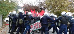Un esempio significativo si è avuto ad Atene, dove NAR-ANTARSYA e alcuni anarchici si sono radunati davanti alla stazione centrale nel tentativo di dar vita a un corteo, venendo però duramente attaccati dai reparti antisommossa della polizia con l’impiego d’idranti, gas lacrimogeni e unità motorizzate. Le compagne e i compagni non si sono lasciati sopraffare: sono rimasi compatti e hanno tenuto per un’ora la posizione, intonando slogan e canti di lotta, per poi muoversi in corteo attraverso alcuni quartieri della città. Il corteo è stato infine nuovamente attaccato dalle unità motorizzate della polizia, che hanno arrestato quattro compagni. Lo stesso copione si è ripetuto in numerose altre città.