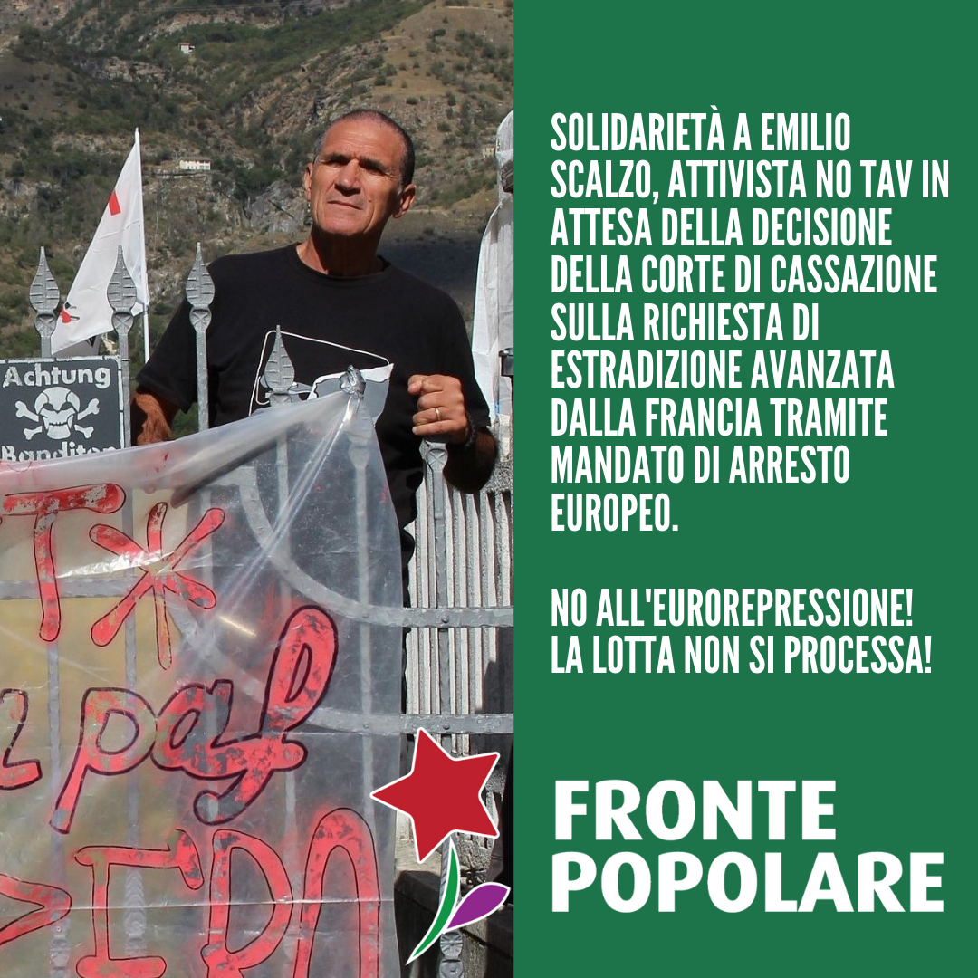 Da quando il 23 settembre è stato rilasciato dal carcere di Torino, l’attivista No TAV Emilio Scalzo è sottoposto ad arresti domiciliari. Lì attende il pronunciamento della Corte di Cassazione, previsto per il 26 novembre, sul ricorso contro il Mandato di arresto europeo spiccato contro di lui dal Tribunale francese di Gap. Scalzo era stato arrestato lo scorso 15 settembre a Bussoleno. In Val di Susa il sessantaseienne di origine siciliana risiede sin dall’infanzia.