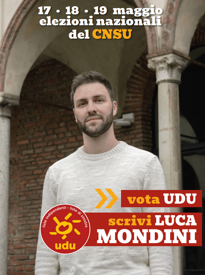 Sosteniamo e votiamo Luca Mondini alle prossime elezioni del CNSU!