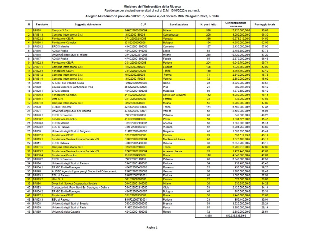 [Fonte tabella: Ministero dell’Università e della Ricerca, Decreto Ministeriale n. 1246 del 28-11-2022, Allegato I; Elaborazione dati a cura di Fronte Popolare]