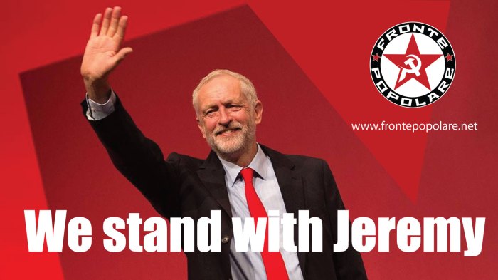 The news of Jeremy Corbyn’s suspension from the Labour Party and the infamy of the accusations of anti-Semitism that motivate the measure are a source of deep indignation for us. We are evidently witnessing an operation conceived and concerted with the aim of indelibly tarnishing the reputation of an upright militant of the British and international left, with intent to delegitimise and marginalise an entire political movement.